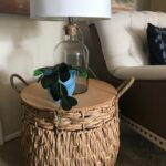 It doesn’t get any easier than this. The basket was a great inexpensive find at Ross; unusual for this size basket. I just added a hardware store bought MDF circular round for the top. Easy, peasy!